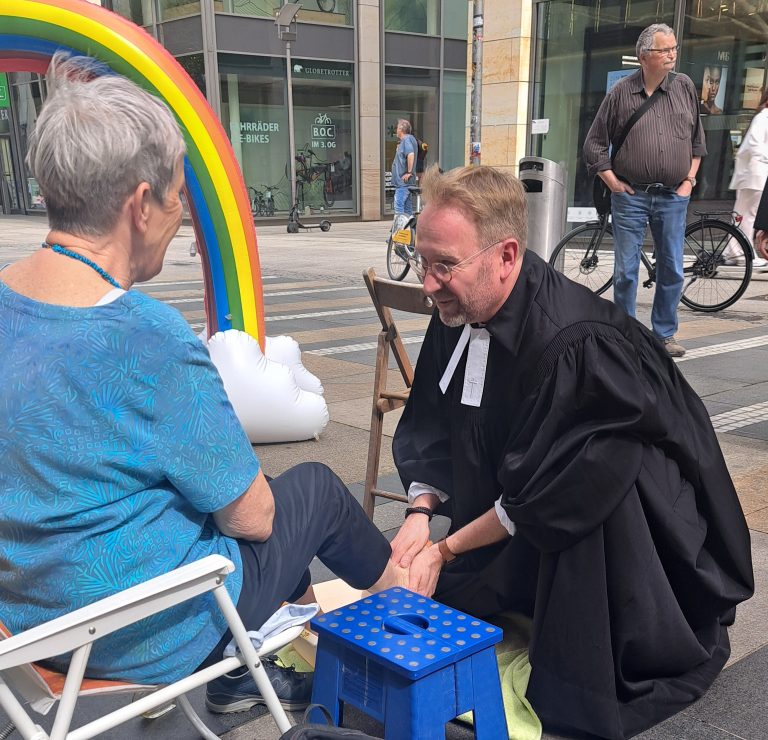 Eine kleine Gruppe evangelischer Pfarrerinnen und Pfarrer bietet am Gründonnerstag in Dresden erneut eine Fußwaschung an. Inspiriert von der biblischen Erzählung, in der Jesus seinen Jüngern die Füße wäscht, stehen sie am 2. April bereit, um jeder Person, die das möchte, die Füße zu waschen.