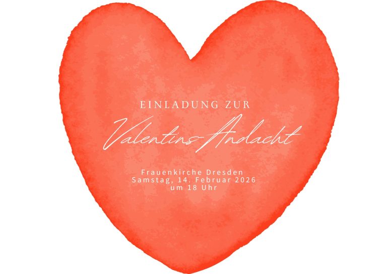 Liebe Verliebte! Ob verheiratet oder unverheiratet, ob frisch verliebt oder Jahrzehnte gemeinsam unterwegs, ob Christinnen oder Nichtchristen, wir laden euch herzlich ein zur Valentins-Andacht am 14. Februar 2026 um 18 Uhr in die Frauenkirche Dresden.